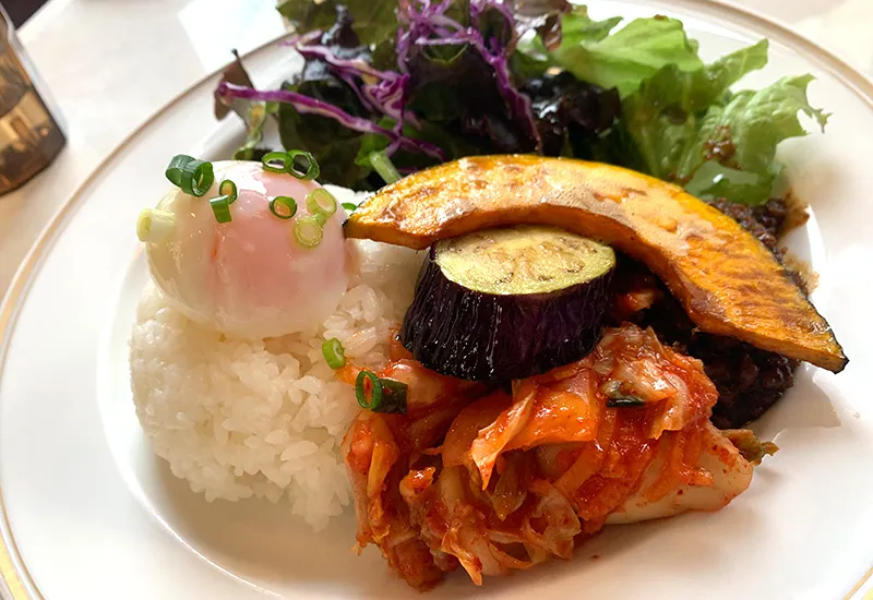 なすにかぼちゃにキムチと、彩り豊かなプレートで、めちゃくちゃ美味しそう~!