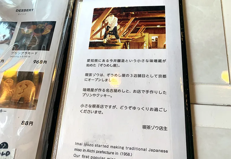 この「喫茶ゾウ」はぞうめし屋の3店舗目として2019年に京都にオープンし、京都で名古屋めしが味わえるというわけなんです!